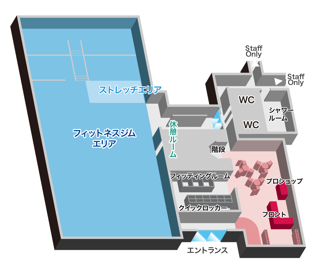 シャワールームだけでなく、男女それぞれに広々とした大浴場がございます。トレーニング後の汗を流し、ゆったりとおくつろぎください。
