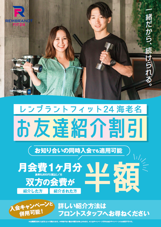 レンブラントフィット24海老名ではお友達紹介キャンペーン開催中!!